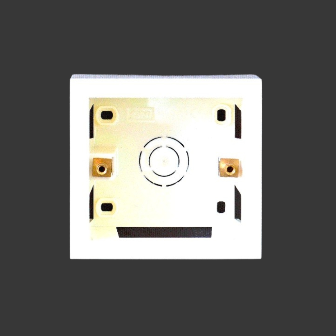 Made from high-quality, fire-retardant PVC with Brass inserts for secure mounting.Multiple knockouts for easy wiring and universal compatibility with modular plates.